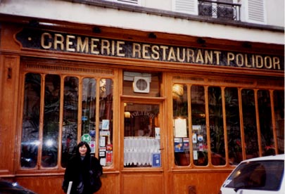 POLIDOR, 41 rue Monsieur-le-Prince, 6e, tel 01 43 26 95 34)はお勧めです。創業は1845年で、かつての常連客には、ヴェルレーヌ、ランボー、ヘミングウェイ、ジッド、ヴァレリー、ジェームス・ジョイスなど世界文学の巨星が含まれています。「とっておきパリ左岸ガイド」によると、「・・・なによりも素晴らしいことは、100年以上経ってその間何人か経営者も替わっているのに、"安い、旨い、楽しい"という創業当社からのポリシーを今日まで一貫して守っていることだ」そうです。場所は地下鉄のCluny
