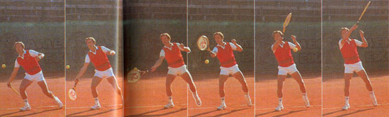 今回はフェデラーのフォアハンド・ストロークを参考にすると、一般プレイヤーも従来より威力のあるボールを打てるようになる可能性があるという話をします。プロテニスプレイヤーのフォアハンド・ストロークは通常、ボールを打つときに下からこすりあげるようにする、トップスピン・ストロークが大半です。私の記憶によれば、トップスピンを初めて本格的に使い始めたのは、ビヨン・ボルグだったと思います。ボルグの時代のトップスピンは、ボールをこすりあげることに重点が置かれていたらしいことから、ラケットを低い位置から頭より上まで振り上げるのが普通でした。